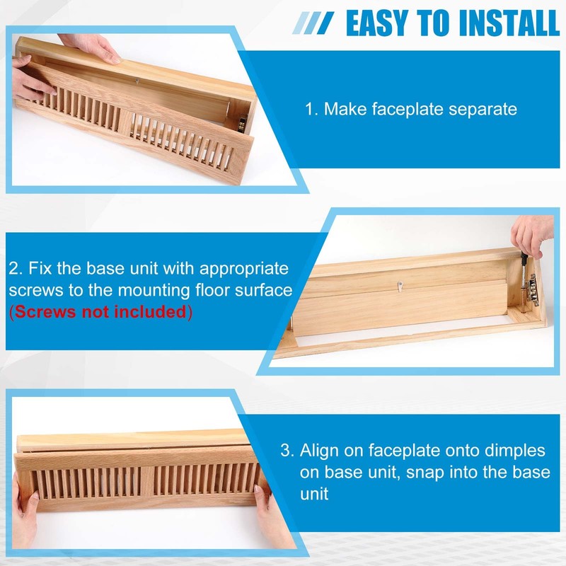 - Detachable Surface for Easy Maintenance: the wood vent register is designed with a detachable surface, facilitating seamless cleaning; This feature enhances good airflow control, optimizes indoor circulation and ventilation, and ensures your air quality remains fresh and comfortable