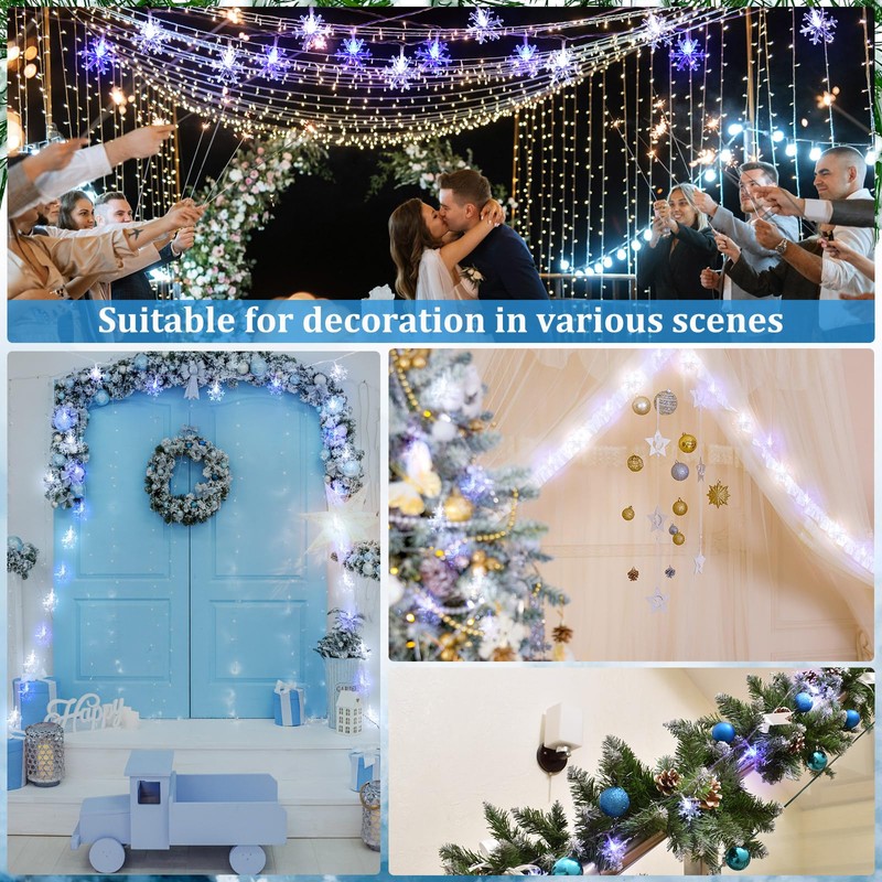 - Beautiful Indoor and Outdoor Decoration: with blue and white design and weather resistance capability, the Christmas snowflake lights are ideal for multiple uses, including home decoration and camping; You can use it to adorn your Christmas trees or activate a beautiful night scene in your garden; It's also suitable for parties, weddings, and winter theme events