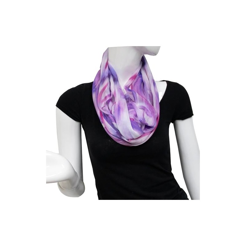 Gloop Loop Tube Scarf for Women Scarf Silky Airy Light with Colourful Pattern Print, Purple 00959a3