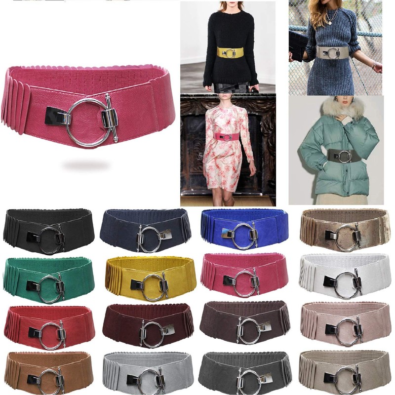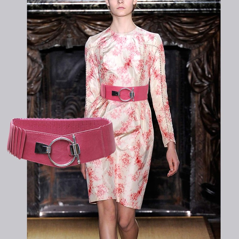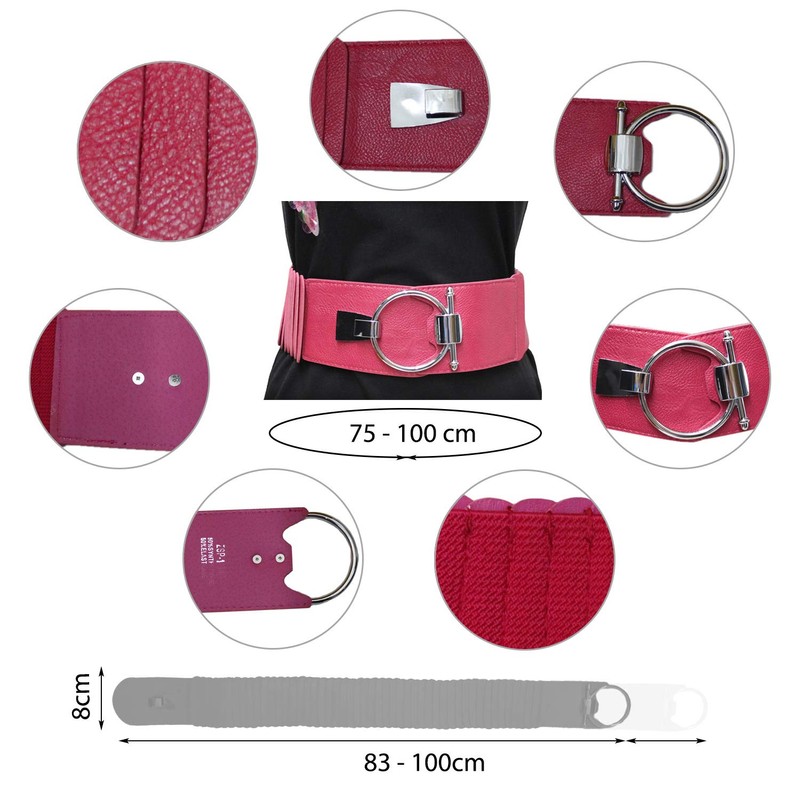 Gloop Women's Waist Belt Elastic Belt 8 cm Wide Waist Belt Silver Ring, pink