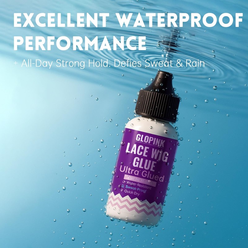 Glopink Lace Wig Glue for Front Wigs, Strong Hold Waterproof Adhesive for Lace Fronts & Hair Systems, Sweat Proof, Long Lasting Hold up to Weeks(1.29Fl OZ)
