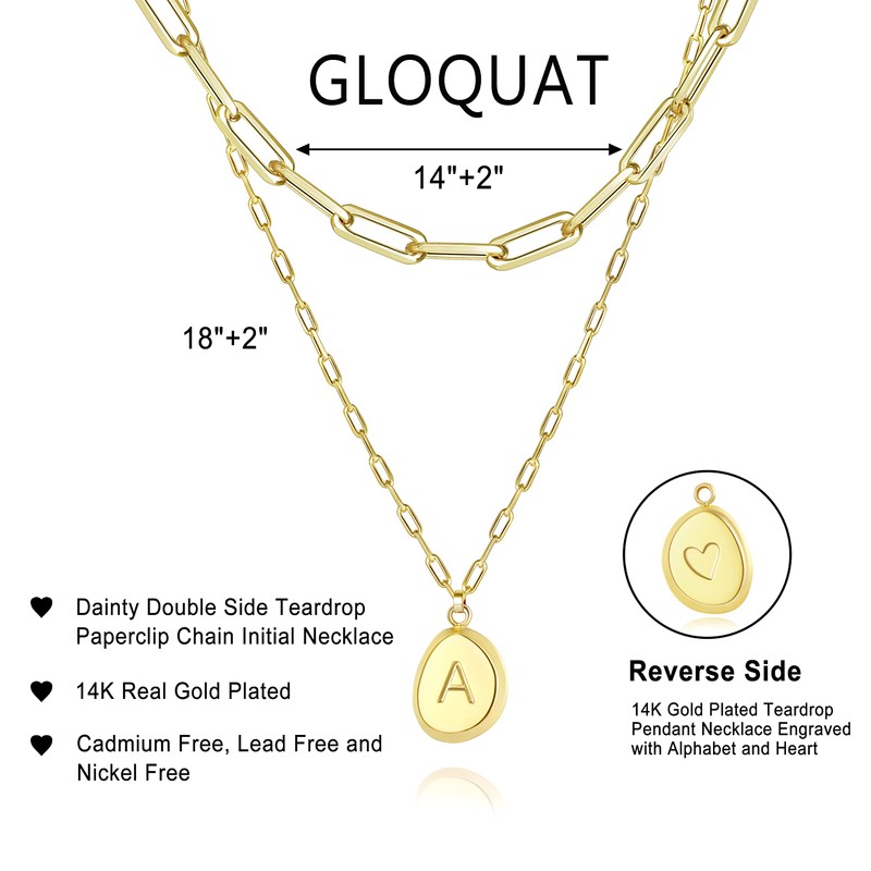 GLOQUAT Layered Initial Necklaces for Women Gold Paperclip Link Chain Coin Necklaces for Women 14K Gold Initial Necklaces for Women Initial Necklace for Jewelry