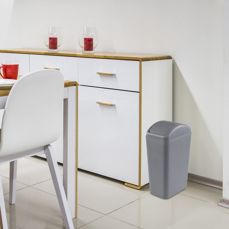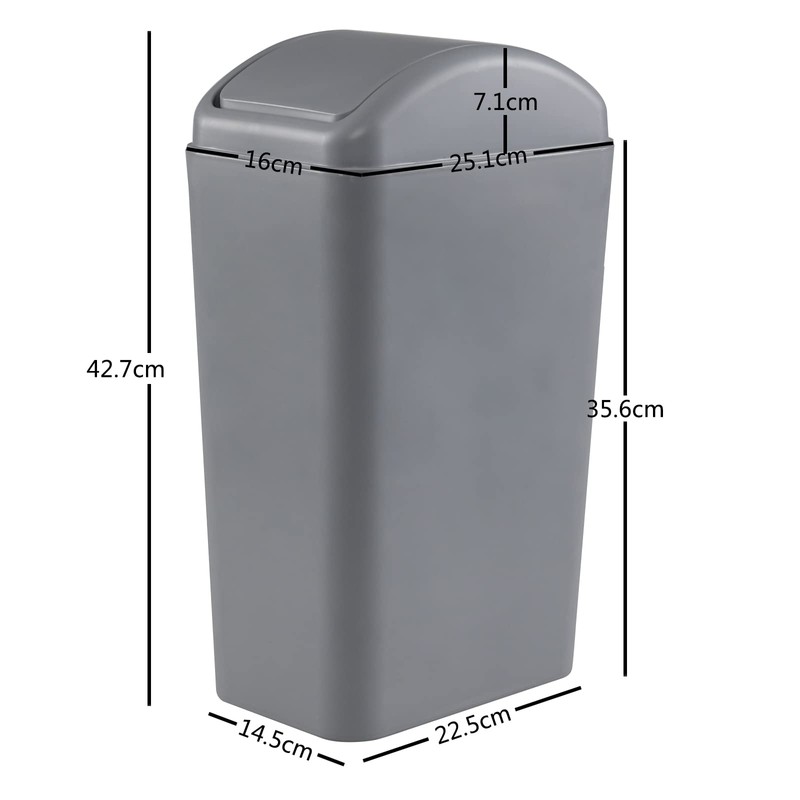 Gloreen 12 L Slim Garbage Can with Swing Lid, Grey Plastic Trash Can