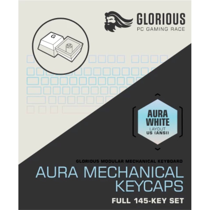 Glorious Gaming 145x Aura Keycaps V2 - PBT Pudding Keycaps, RGB-freundlich, PBT-Material für höhere Haltbarkeit & satten Sound, passt auf jeden MX-Style-Schaft, US/GB Layout - Weiß