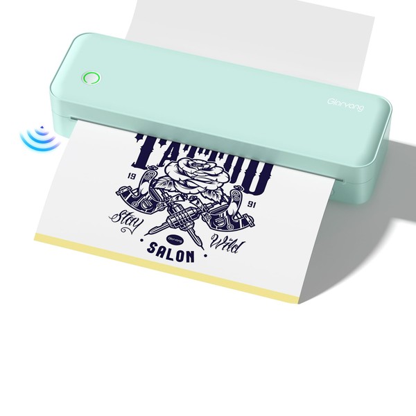 Gloryang Wireless Tattoo Transfer Stencil Printer, Portable Thermal Tattoo Machine for Tattoo Beginners with 40pcs Stencil Paper, Compatible with Smartphone & PC, Rechargeable & Inkless, Light Green