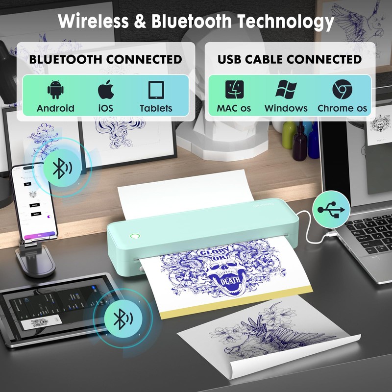 - High-Quality & Accurate Stencil Creation - Deliver crisp, clear stencils every time. The printer’s advanced technology ensures fine lines and high resolution, providing professional-grade quality that enhances the tattooing experience. Effortlessly create precise tattoo stencils in seconds. This printer eliminates the need for manual drawing, allowing artists to transfer intricate designs directly onto the skin with ease.