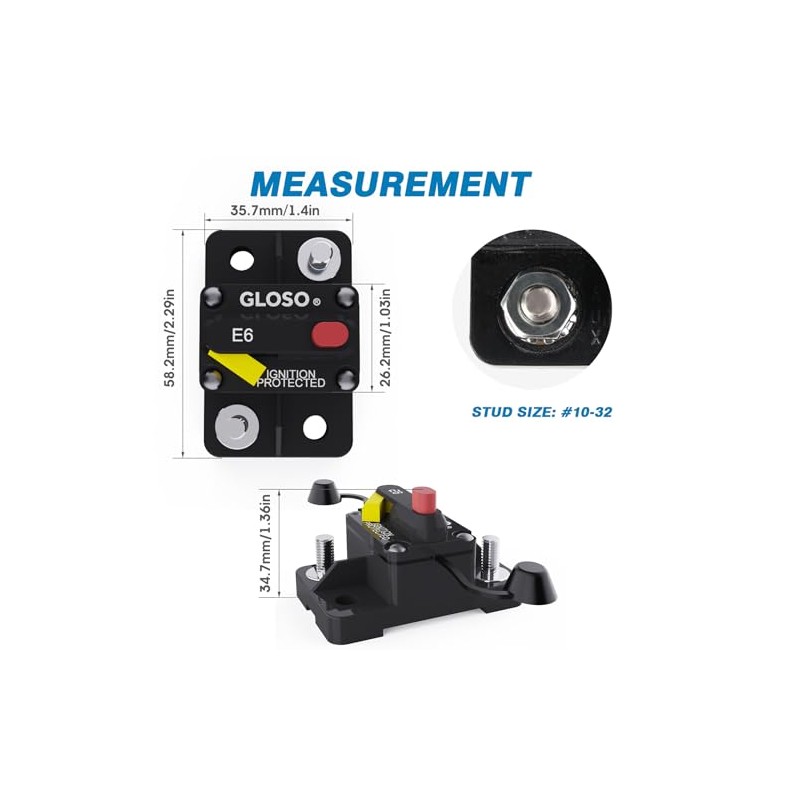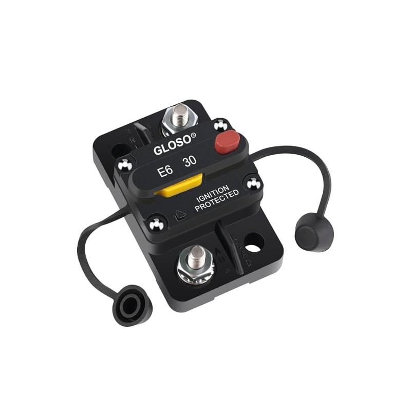 GLOSO GLOSO Circuit Breaker 30 A E69 for Marine Truck Boat RV Automotive Mid Range Mini T3 Manual Reset Switchable Compact Medium IP66 (30 A)