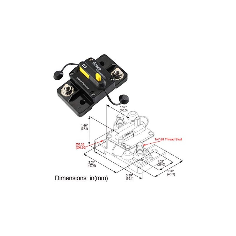 GLOSO GLOSO Circuit Breaker E93 100A Breaker Extended Surface Mount 1/4" Diagonal Stud Waterproof IP67 Marine RV Truck Hi-Amp (100A)