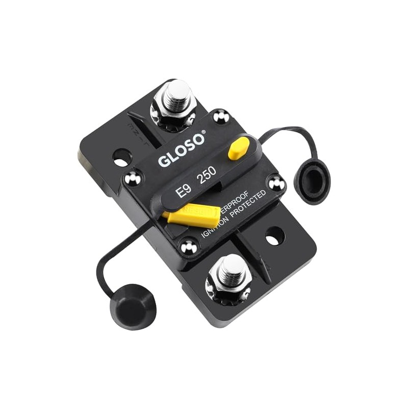 GLOSO GLOSO Circuit Breaker E93 Extended Surface Mount Hi-Amp Breaker 3/8" Diagonal Stud Waterproof IP67 Marine RV Truck (250A)