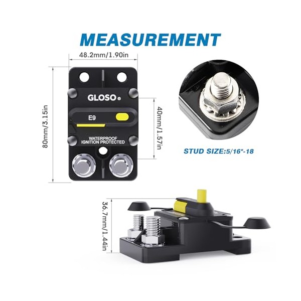 GLOSO GLOSO Circuit Breaker E9C 50A Waterproof Auto Rese Breaker for Car Truck RV Automotive Marine Boat Trolling Motor & Custom Wiring Audio Battery Protection Side by Side Stud IP67 Hi-Amp (50A)