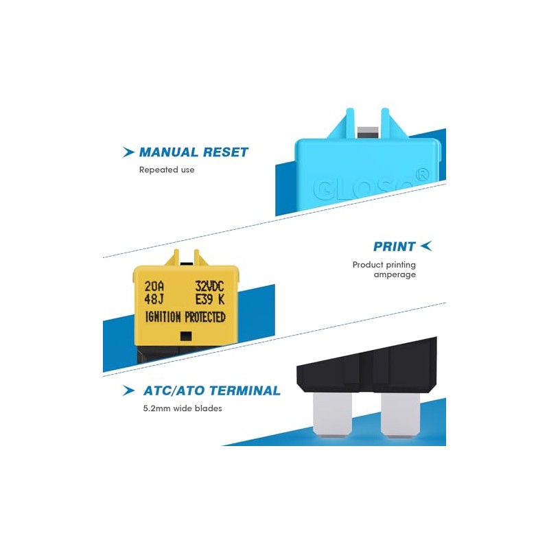 GLOSO GLOSO Circuit Breakers E39 Manual (T3) Reset Low Profile ATC/ATO (25A -...