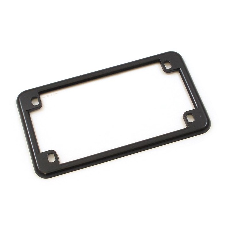- Gloss black metal motorcycle license plate frame. This is a universal license plate frame.