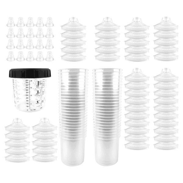 - Disposable Paint Spray Gun Cup Liners and Lid System 20 Ounce 50 Pack Kit