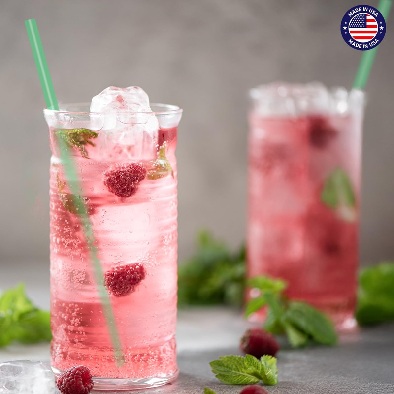 Glotoch Express 500 PCS Individually Wrapped Green Plastic Straws, 10.25'' Long, 0.24'' Diameter Disposable Drinking Straws for Every Occasion, Party, Made in USA