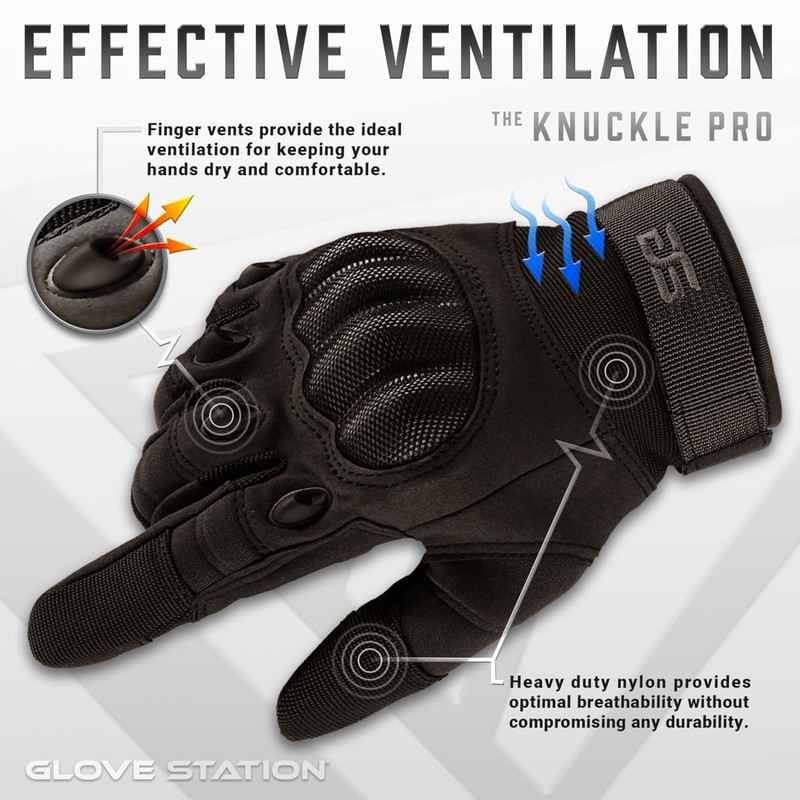 Glove Station Tactical Gloves for Men – Touchscreen Utility Gear with Hard Knuckle Protection Used in Motorcycle, Airsoft, Combat, Police, Shooting & Outdoor Work