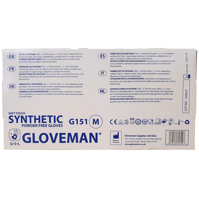 Gloveman Soft Touch Synthetic Powder Free Disposable Gloves (Box of 100) (Large)