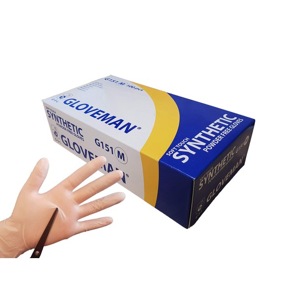 Gloveman Soft Touch Synthetic Powder Free Disposable Gloves (Box of 100) (Medium)