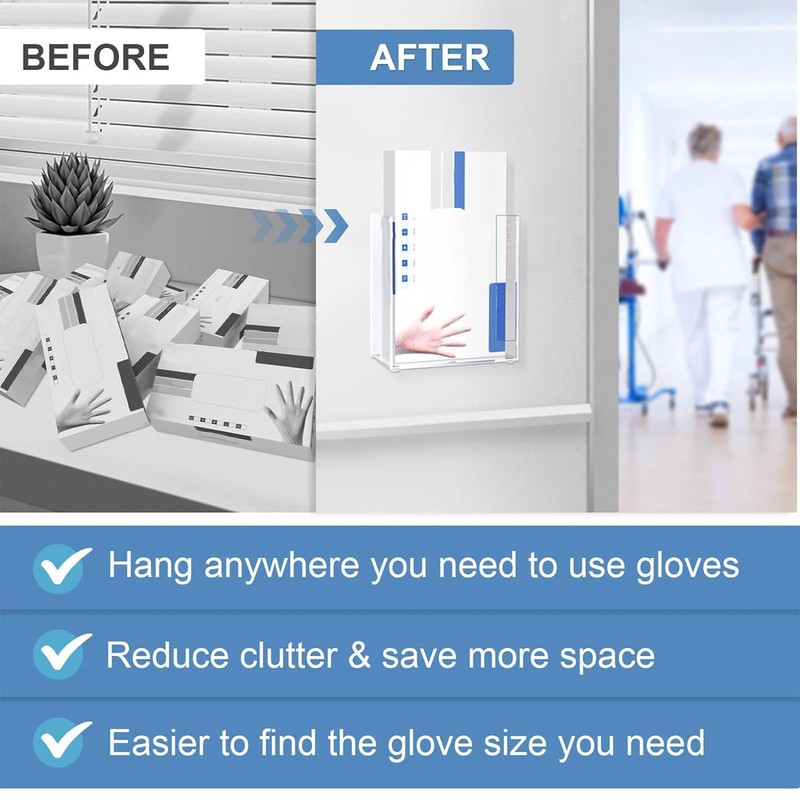 - ✷Efficient Stock Management: Our acrylic gloves dispenser allows for safe and timely replenishment, thanks to its clear material that lets you monitor gloves levels with ease. Ensure a hygienic and productive environment.