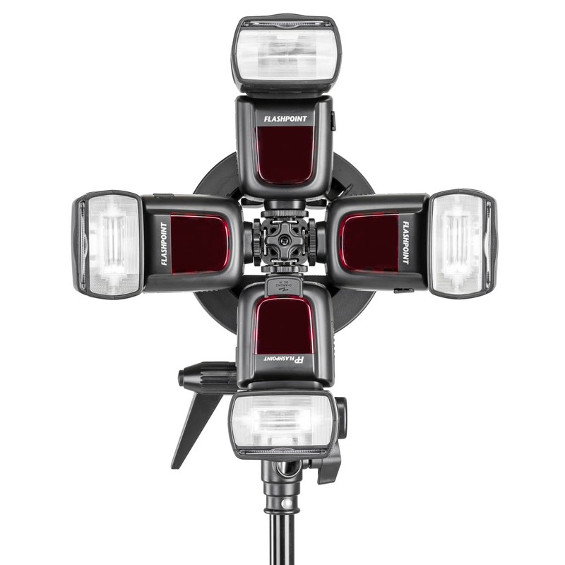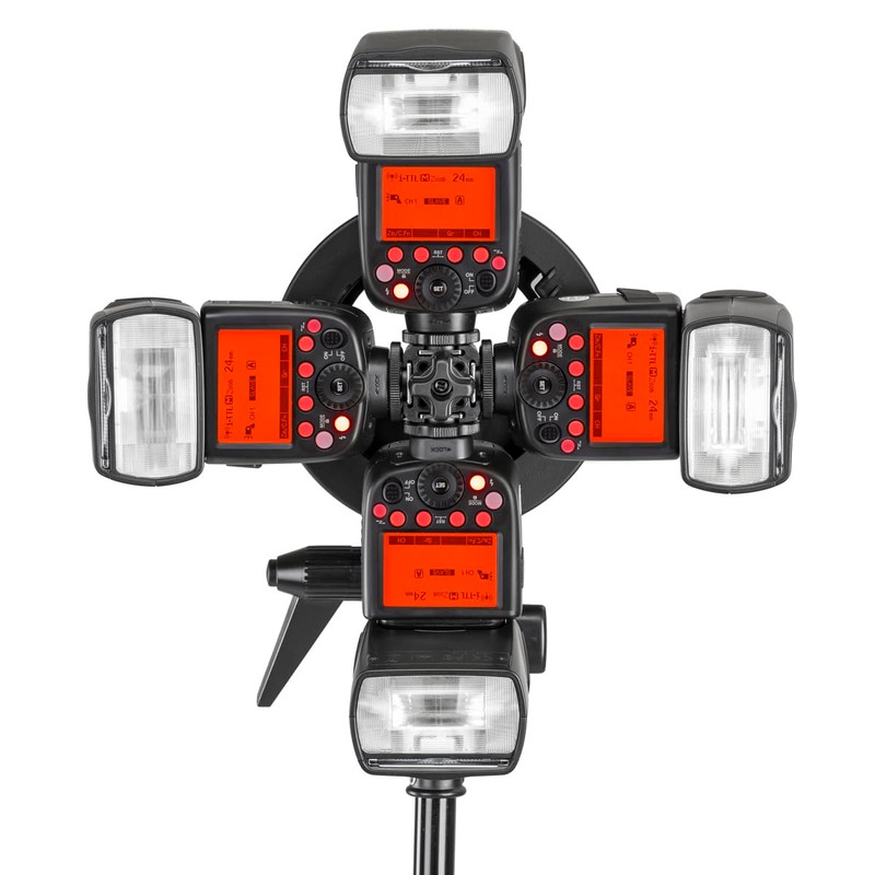 - Glow 4-SA Universal Four Speedlite Adapter can mount up to 4 flash simultaneously.