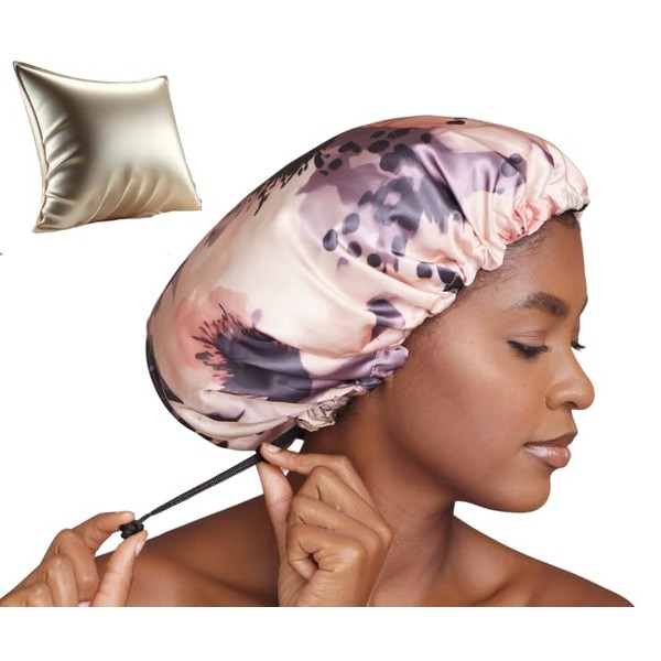 - ADJUSTABLE: Allows for the most comfortable fit around head and versatile hairstyles with included drawstring. Perfect option for those with voluminous, thicker, or longer hair including natural hair, rollers, flexi rods, braids, locs, etc.