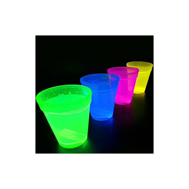Glow Cups Pack of 4 Party Drinking Glow in The Dark Beaker Green Blue Pink Yellow Press to Activate