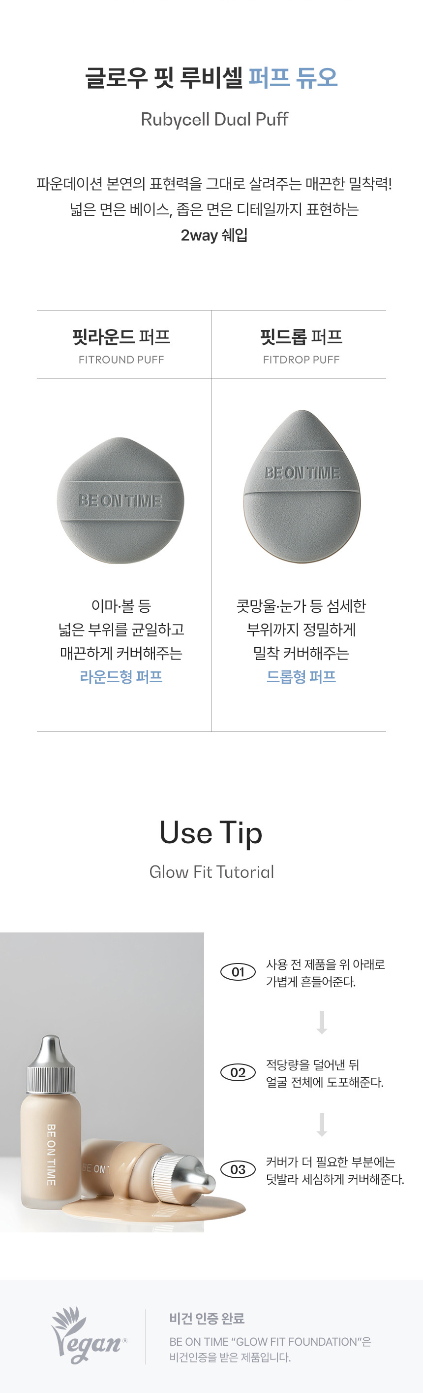 Glow Fit Foundation (No. 110, No. 115) + Ruby Cell Puff Set / 글로우 핏 파운데이션 (110호115호) + 루비셀 퍼프 세트