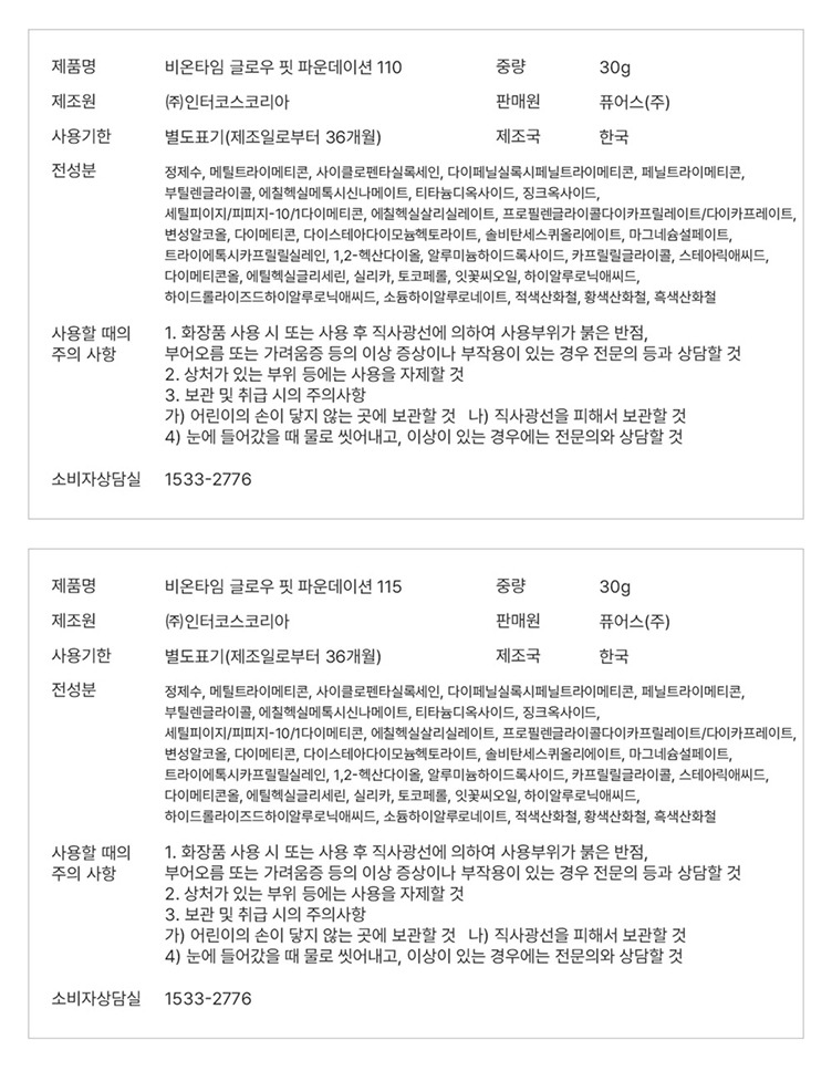 Glow Fit Foundation (No. 110, No. 115) + Ruby Cell Puff Set / 글로우 핏 파운데이션 (11...
