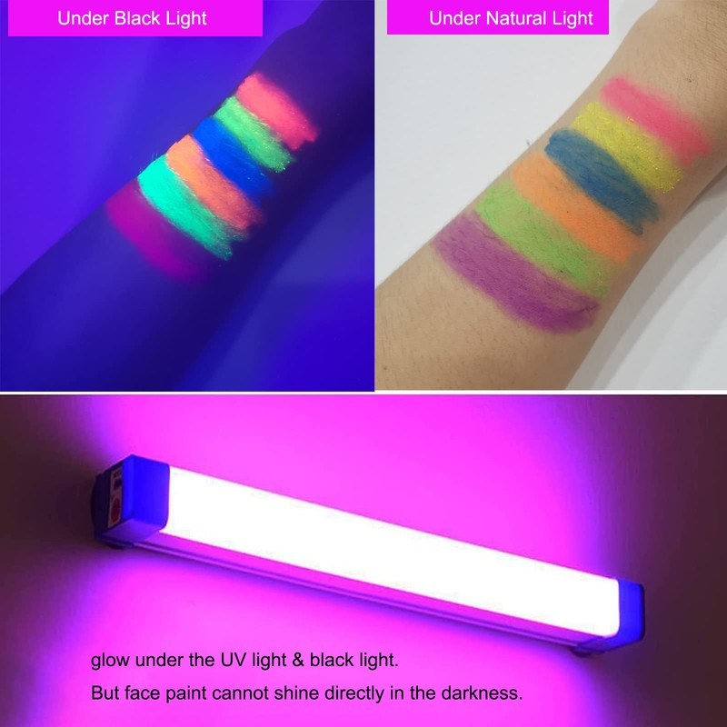 Glow in The Black Light Face & Body Paint, UV Neon Glow Fluorescent Face Pain...