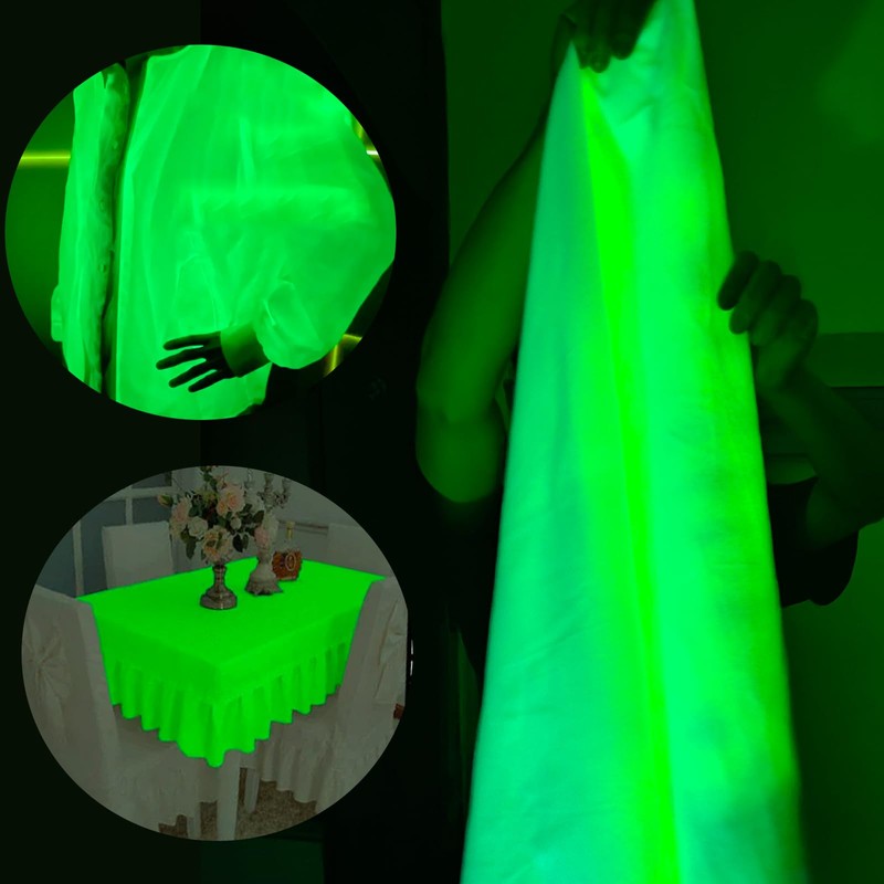 - Glow in the dark: Our fabric will light up in the dark by any daylight, black light, UV light or after direct exposure to the sun, the material can be charged by any light source and glows brightly in the dark. The longer the irradiation time the brighter the glow will be! It is recommended to supplement his light exposure often, and can be recycled infinitely so that he can always emit light in the dark.