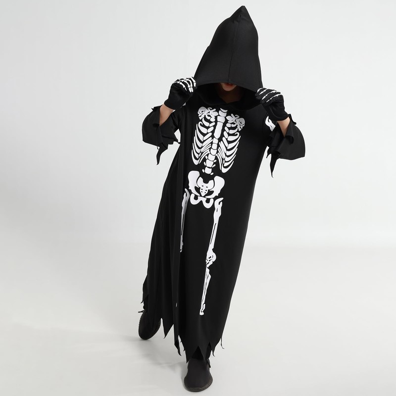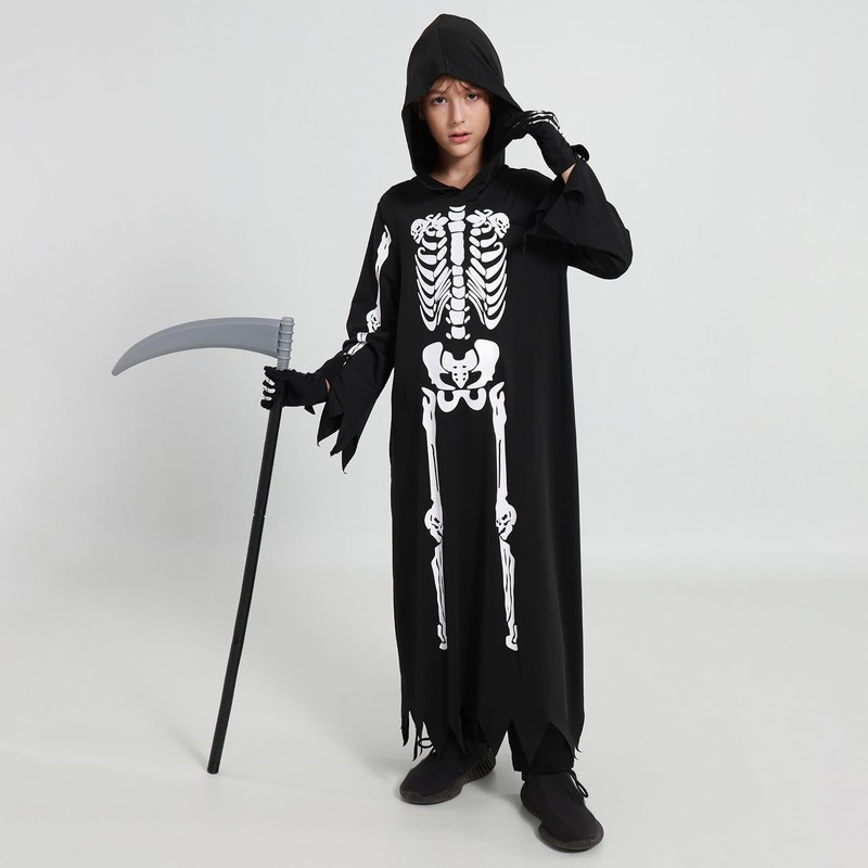 - Complete Grim Reaper Costume Set: Boys halloween costume grim reaper, includes everything for an instant iconic look: a hooded cape and matching gloves, with a realistic scythe prop. No need for additional purchases—your kid can transform into the classic Halloween character the moment the set arrives.