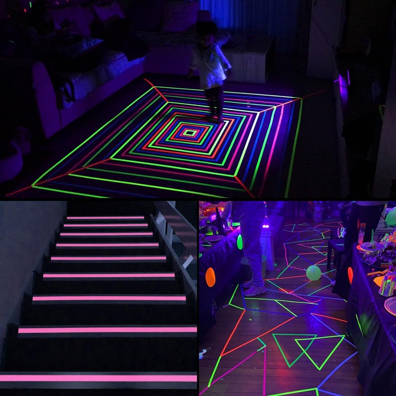 - Glow in the Dark Tape: Create a mesmerizing glow effect with our high-quality glow in the dark tape.Illuminate your space with our fluorescent neon tape and make your next event unforgettable. Perfect for parties, decorations, and creative projects.