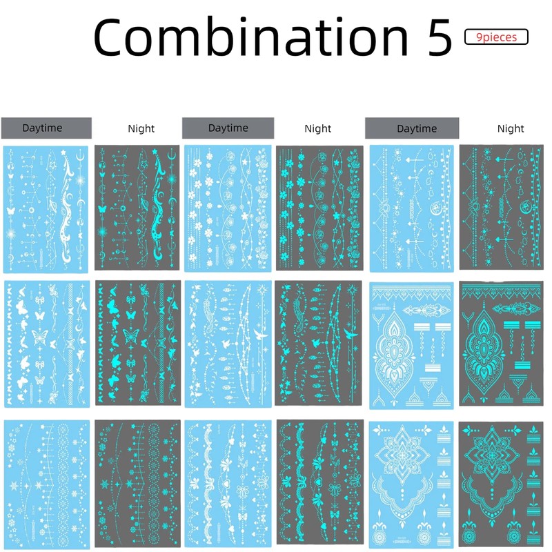 Glow in the Dark Temporary Tattoos, Waterproof Water Transfer, Long-lasting Realistic Fake Tattoos for Party, Picnic, 15 Pic (Combination 5)