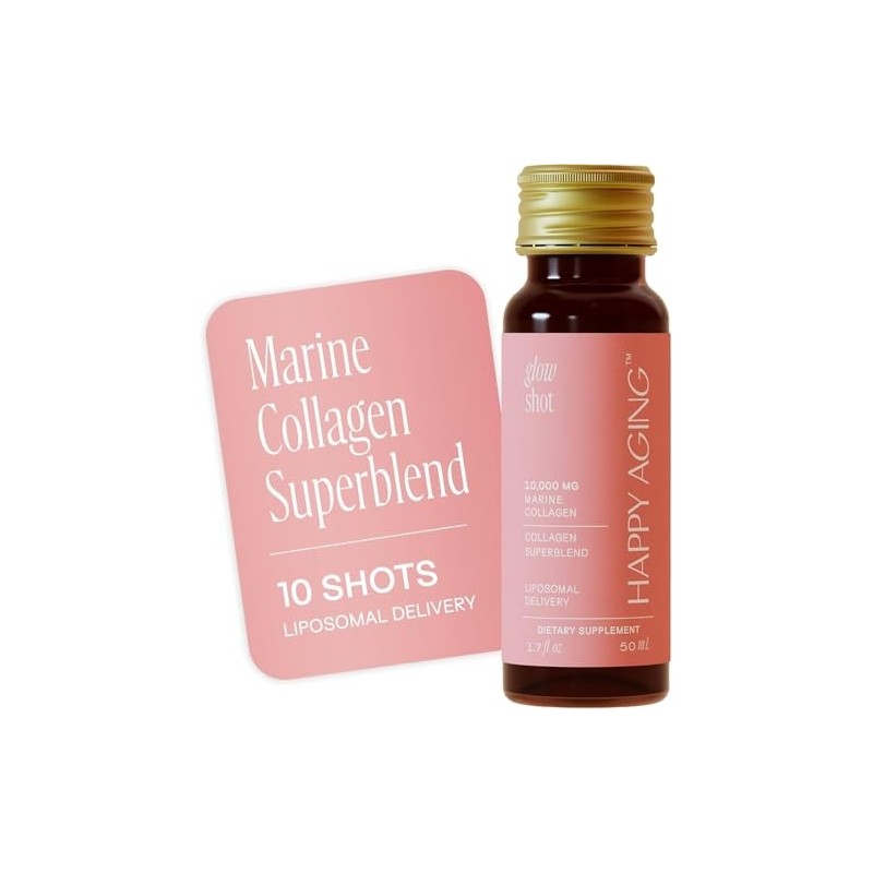 Glow Shot, 10,000mg Marine Collagen Peptides, Liposomal Delivery, Promotes Skin Hydration, Elasticity & Radiance, Supports Hair & Nails, Ready-to-Drink, No Sugar, Non-GMO, 60 Shots