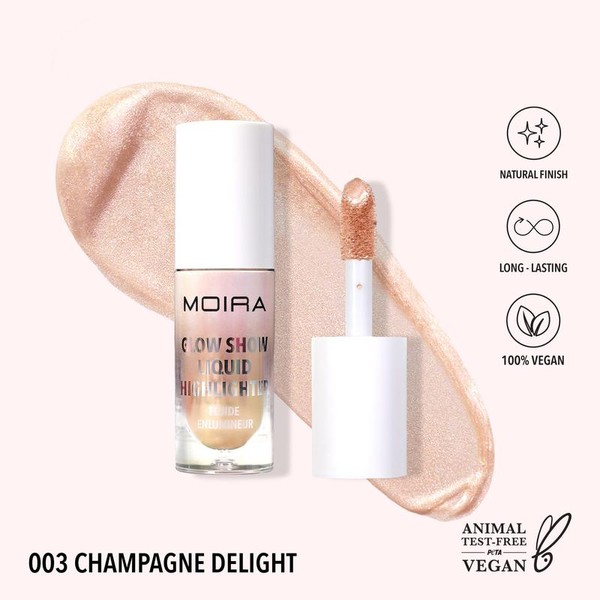 Moira's new Glow Show Liquid Highlighter is your ticket to radiant, luminous skin! This lightweight, buildable highlighter effortlessly blends onto the skin, leaving a dewy-like, soft finish. Available in a range of flattering shades, it delivers a natural-looking glow that enhances your features and gives you that coveted lit-from-within radiance. Whether you prefer a subtle sheen or a bold gleam, Glow Show Liquid Highlighters are your go-to for achieving that perfect glow.