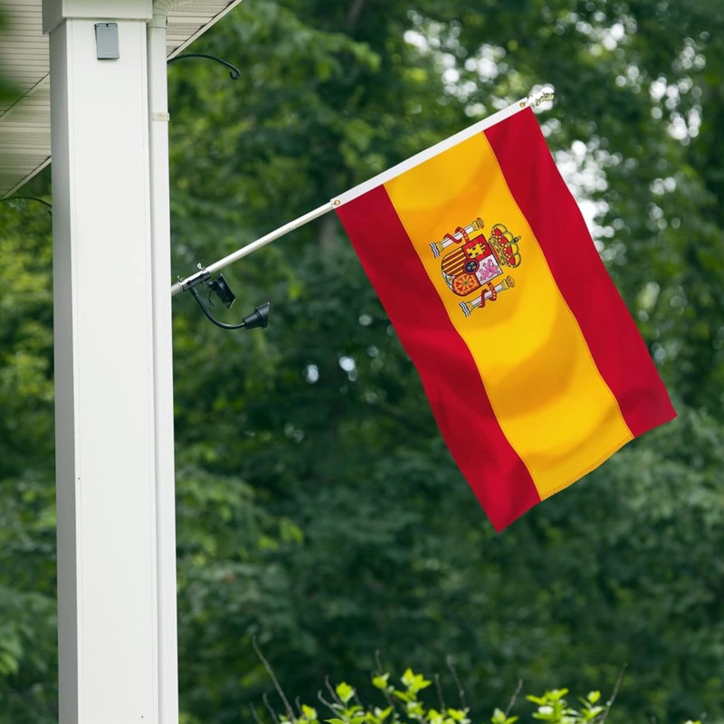- Details - Package includes 1pcs Spanish Flag featuring two Brass eyelets and double stitched hems making it easy to display your flag wherever you like.
