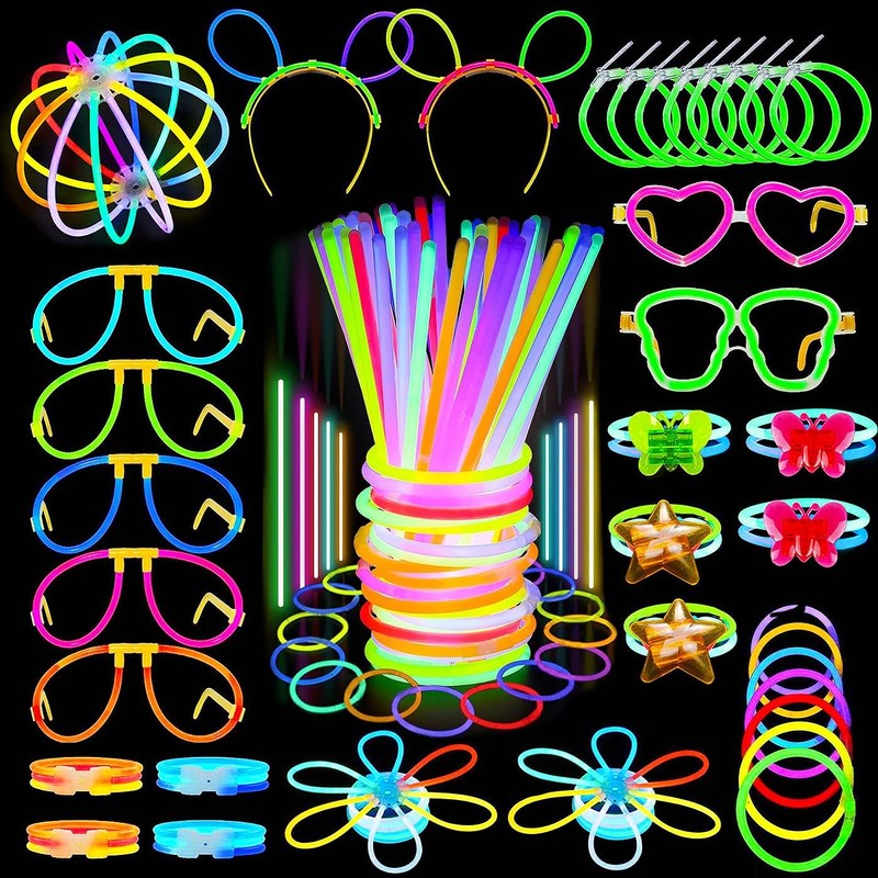 - ⭐【Easy to Use】Grab both ends of the glow stick and bend the stick with your thumbs, after bending it will appear a fluorescent effect. Shake it to make the fluorescent more uniform. Our glowing party supplies includes premium quality connectors that allow you to get creative by creating bracelets, necklaces, hats, eyeglasses, headband, balls, flowers, and other unique glowing designs.