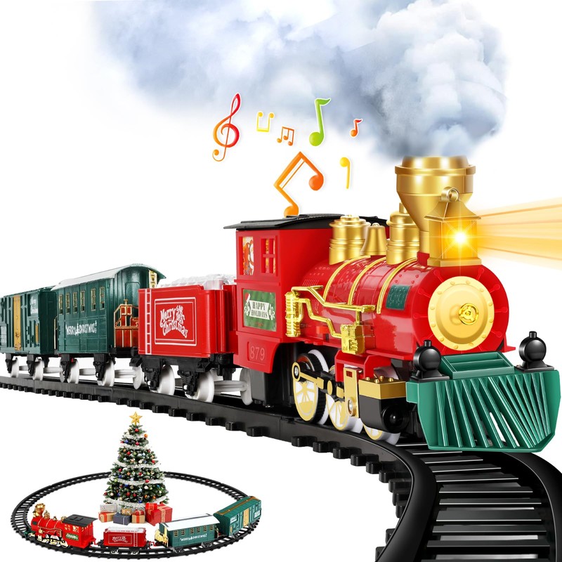 Gloween Train Set - Electric Train Toy for Boys & Girls, Christmas Train Sets for Under The Tree, Railway Kit with Smoke, Sound, Light, Cargo Cars & Tracks, for 3, 4, 5, 6, 7, 8+ Year Old Kids - S1
