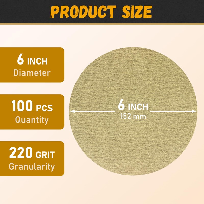 - PACKAGE INCLUDED: 100 pcs 6-inch 220 Grit PSA sanding disc.Perfect discs for sanding orbital sanders、DA Sander