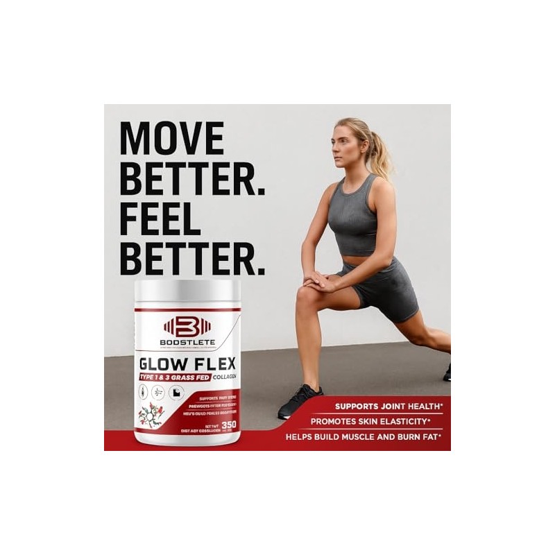 GlowFlex Grass-Fed Collagen Peptides Powder - Type I & III Collagen, Supports Skin, Hair, Nails, Joints & Overall Wellness - Non-GMO, Unflavored - Made in USA (30 Servings)