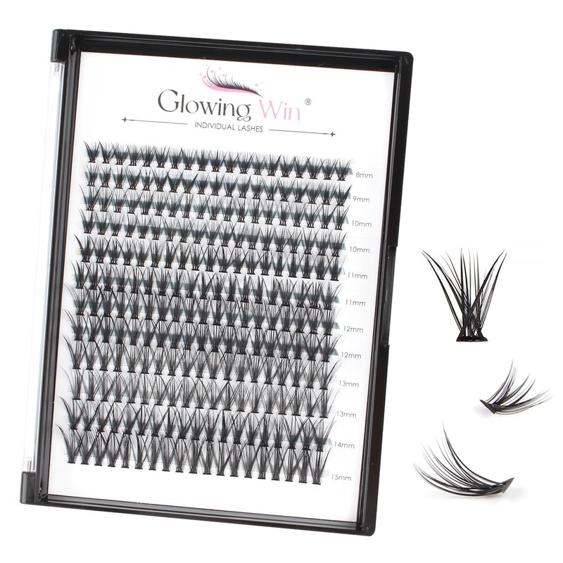 - 【Specification】: Glowingwin individual lashes extensions, 0.07C Curl, 30D, 8-15mm( 8mm*1, 9mm*1, 10mm*2, 11mm*2, 12mm*2, 13mm*2, 14mm*1, 15mm*1). 228pcs cluster lashes(12 rows, 19pcs per row). Soft, cruelty-free, lightweight and reusable.