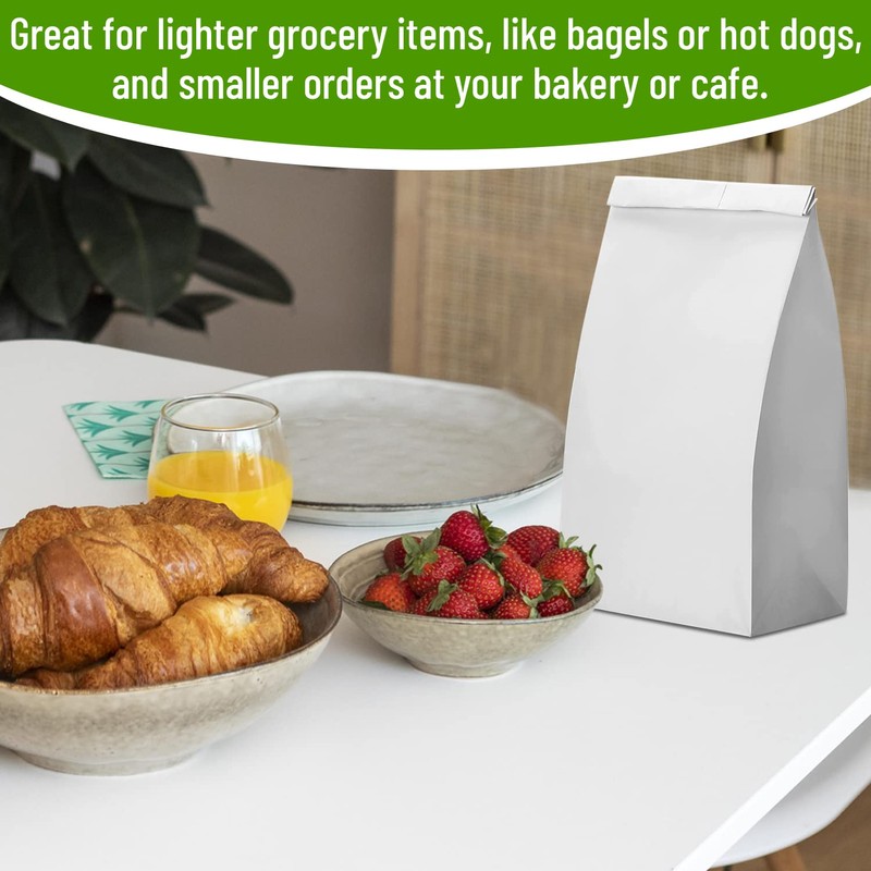 Glownary - White Paper Bags for Lunch, Craft, or Takeout. (2 LB, 100 Count - White)
