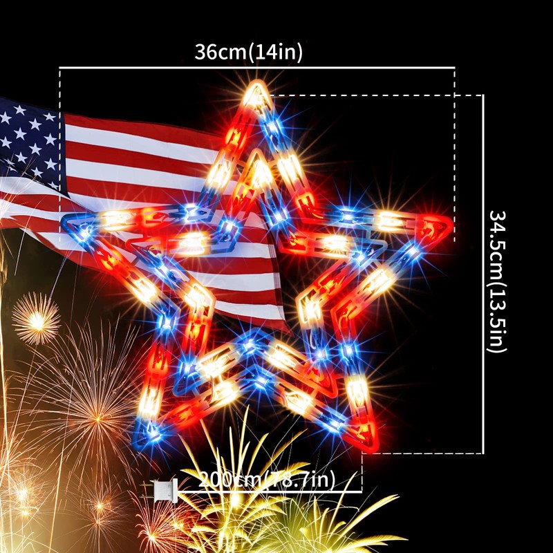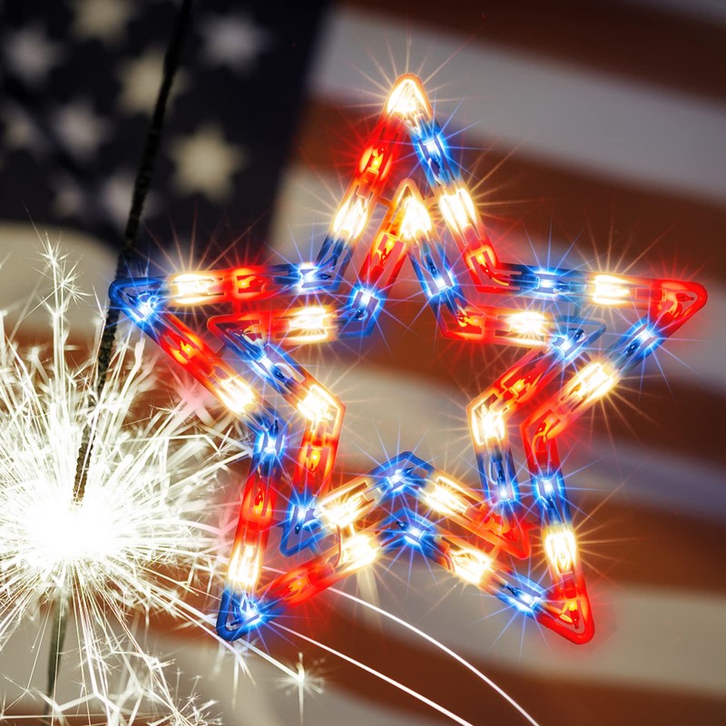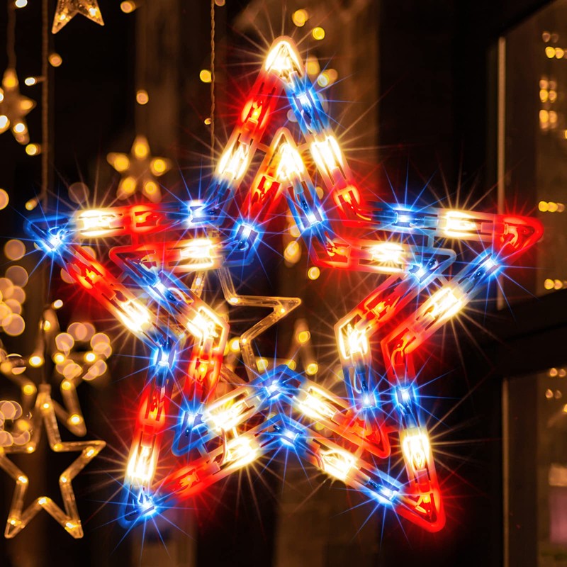 GLOWNOVA 50 Lights Lighted Red White and Blue 4th of July Star Window Silhouette Decoration
