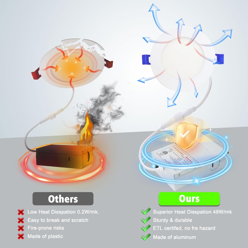- IC-Rated Safety GLOWNOVA's canless LED recessed lights are IC-rated, ensuring they can be safely installed in direct contact with ceiling insulation. This provides thermal protection and insulation compatibility, with a minimal 2-inch ceiling space requirement. This reduces the risk of fire hazards in various ceiling and overhead joist installations.
