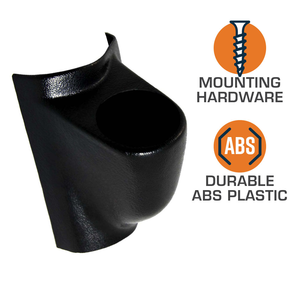 GlowShifts Universal Single Pillar Pod is made to fit the A-pillar of virtually any car or truck and holds a 2-1/16" (52mm) gauge. This aftermarket gauge pod is manufactured from high quality ABS plastic, allowing it to withstand cracking, fading and warping. Its featured in a clean OEM black style and can also be painted using ABS plastic paint to match your factory interior for a custom fit and finish. Upgrade the look of your car or trucks cabin and easily view gauge readings from an optimal location on the A-pillar.