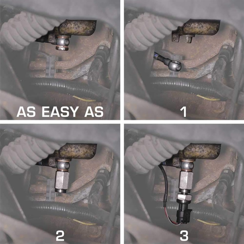 - GlowShift Fuel Pressure Banjo Bolt & Snubber Valve Combo Thread Adapter Allows Users to Install a Fuel Pressure Sensor to the Injection Pump - Built-In Snubber Valve Protects the Sensor from Fuel Pressure Spikes from the Cummins Engine at Start Up