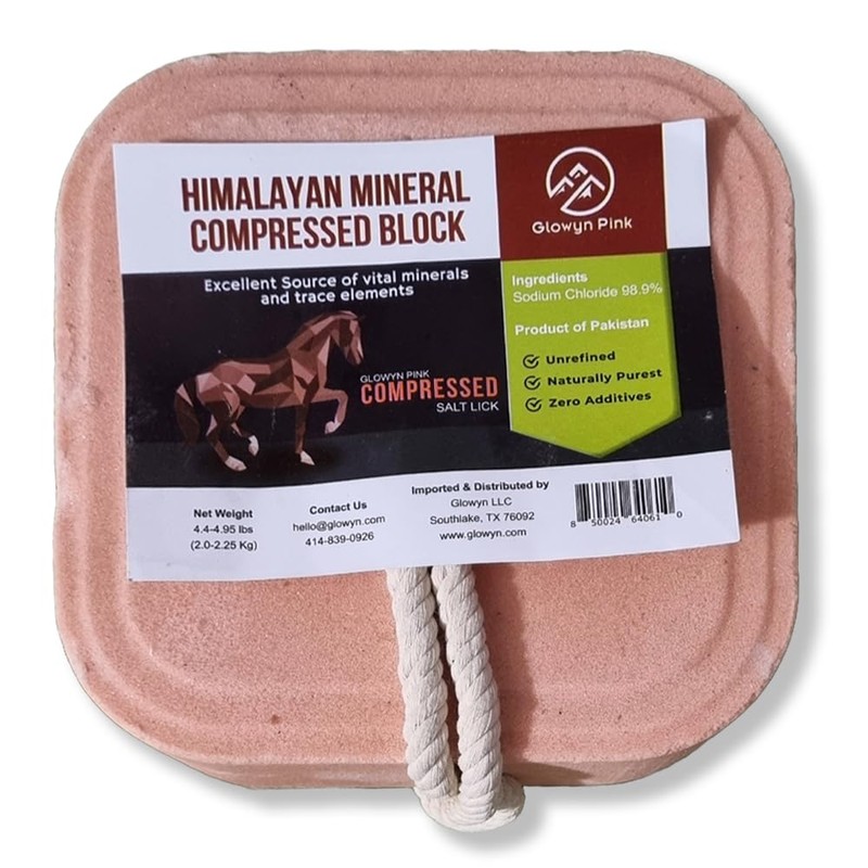 Glowyn Pink Himalayan Compressed Salt for Equine and Livestock Pack of 2 (4.4-4.9 lbs) Each Block Organic Salt Block with Natural Minerals