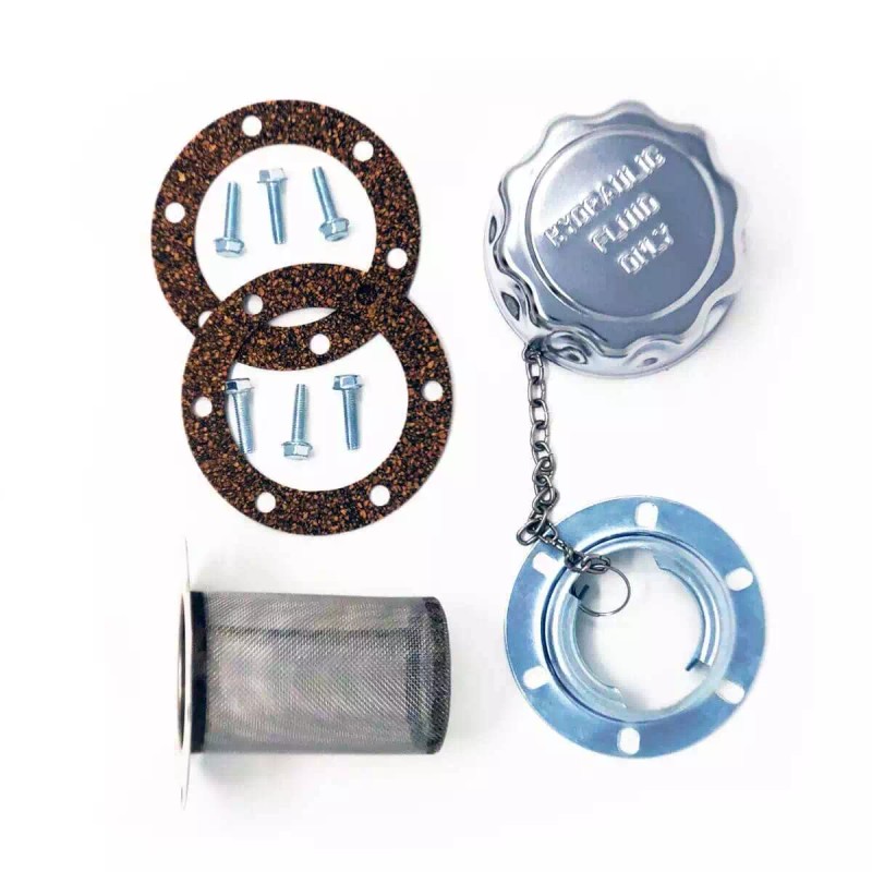 This is a bolt-on filler breather cap assembly and will also replace caps for most hydraulic reservoir tanks. This cap is zinc plated metal cap, 30 mesh nylon basket and cork gasket.