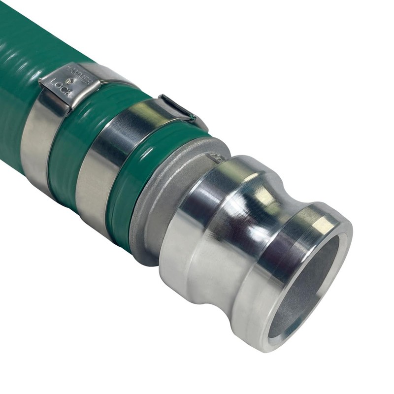 - Male x Female Camlock Fittings installed with Punch Lock Clamps (Type E x Type C Cam and Groove Fittings)