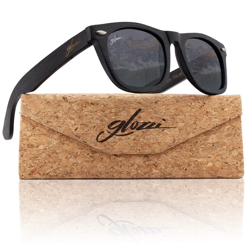 glozzi Bamboo Wood Sunglasses for Men and Women Polarised & Mirrored Glasses UV 400 Category 3 with Cork Case - Black