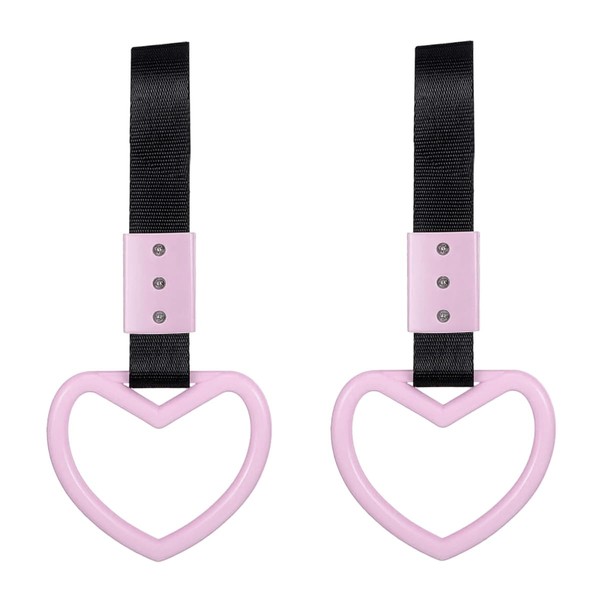 2PCS Heart-Shaped Car Handle Straps, Auto GRAP Handle Warning Pull Ring, Heart Decor for Car, SUV, Subway, Bus